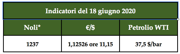 l’Indice dei noli è salito a 1.237 il petrolio sfiora i 37,5 $/bar e l’indice di cambio €/$ segna 1,12526 ore 11,15.