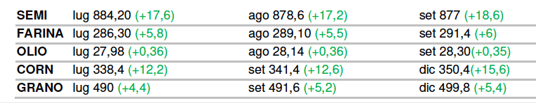 Particolarmente forte il rimbalzo del corn (ha sfiorato il +5%) perché le posizioni dei fondi sono altamente scoperte e quindi vi è stata una corsa alla ricopertura.