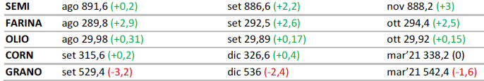 di Mario Boggini e Virgilio – Milano, 31 luglio 2020 – Senza tanti preamboli ecco cosa hanno registrato ieri le agricommodities: