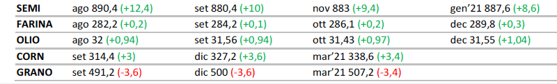 Ma più di quanto registrato quello stupisce quello che stanno facendo in questo momento sul telematico dove si assiste al rialzo su tutta la linea: seme soya, farina di soya, cereali.
