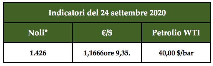 l’Indice dei noli è risalito a 1.426 punti, il petrolio sfiora i 40 $/bar e l’indice di cambio €/$ segna 1,1666ore 9,35.