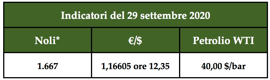 l’Indice dei noli è sceso a 1.667 punti, il petrolio sfiora i 40,00 $/bar e l’indice di cambio €/$ segna 1,16605 ore 12,35