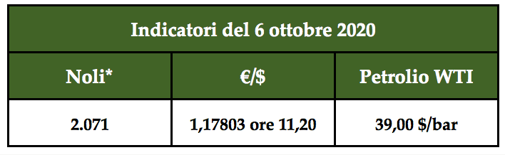 l’Indice dei noli è con forza salito a 2.071 punti, il petrolio sfiora i 39,00 $/bar e l’indice di cambio €/$ segna 1,17803 ore 11,20