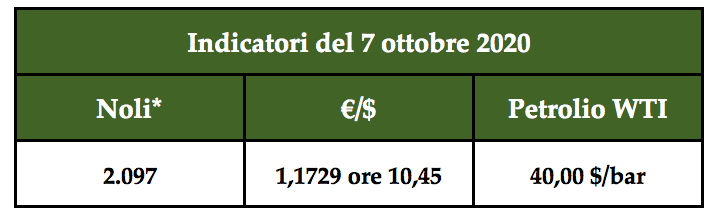 l’Indice dei noli è risalito a 2.097 punti, il petrolio sfiora i 40 $/bar e l’indice di cambio €/$ segna 1,17582 ore 9,13.