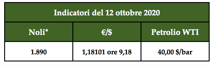 l’Indice dei noli è con ridisceso a 1.890 punti, il petrolio sfiora i 40,00 $/bar e l’indice di cambio €/$ segna 1,18101 ore 9,18