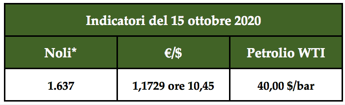 l’Indice dei noli è sceso a 1.637 punti, il petrolio sfiora i 40 $/bar e l’indice di cambio €/$ segna 1,17440 ore 09,10.