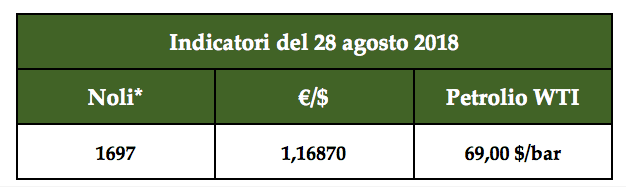 l’Indice dei noli è sceso sino a 1697 punti, il petrolio è fermo attorno a 69,00$/bar. e l’indice di cambio €/$ segna 1,16870