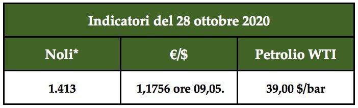 l’Indice dei noli B.D.Y. è leggermente sceso a 1.413 punti, il petrolio sfiora i 39,0 $/bar e l’indice di cambio €/$ segna 1,1756 ore 09,05.