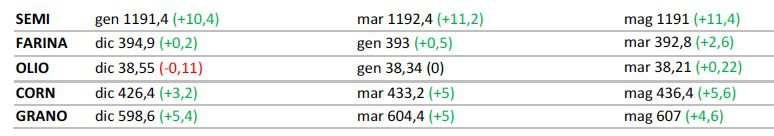 Mario Boggini – esperto di mercati cerealicoli nazionali e internazionali – (per contatti +39 338 6067872) – Valori indicativi senza impegno, soggetti a variazioni improvvise. Questa informativa non costituisce servizio di consulenza finanziaria ed espone soltanto indicazioni-informazioni per aiutare le scelte del lettore, pertanto qualsiasi conseguenza sull’operatività basata su queste informative ricadono sul lettore.