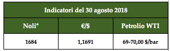 l’Indice dei noli è sceso sino a 1684 punti, il petrolio è fermo attorno a 69-70,00$/bar. e l’indice di cambio €/$ segna 1,1691