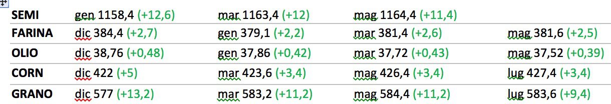 Mario Boggini – esperto di mercati cerealicoli nazionali e internazionali – (per contatti +39 338 6067872) – Valori indicativi senza impegno, soggetti a variazioni improvvise. Questa informativa non costituisce servizio di consulenza finanziaria ed espone soltanto indicazioni-informazioni per aiutare le scelte del lettore, pertanto qualsiasi conseguenza sull’operatività basata su queste informative ricadono sul lettore.