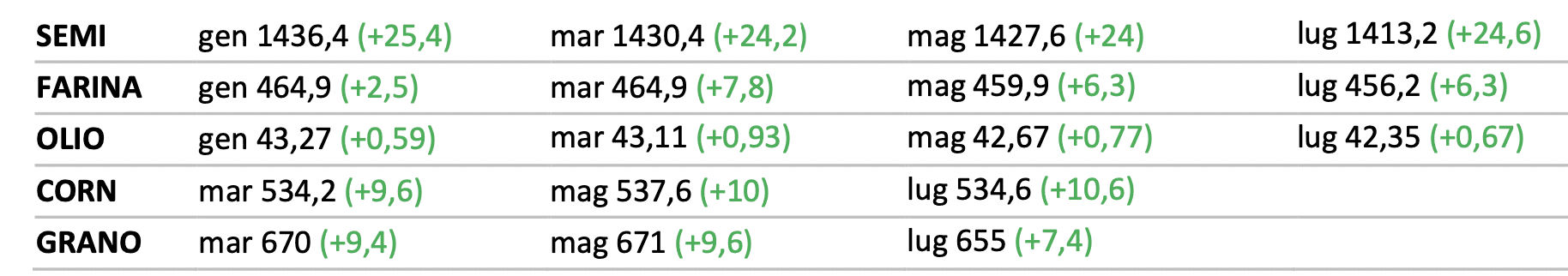 Mario Boggini – esperto di mercati cerealicoli nazionali e internazionali – (per contatti +39 338 6067872) – Valori indicativi senza impegno, soggetti a variazioni improvvise. Questa informativa non costituisce servizio di consulenza finanziaria ed espone soltanto indicazioni-informazioni per aiutare le scelte del lettore, pertanto qualsiasi conseguenza sull’operatività basata su queste informative ricadono sul lettore.