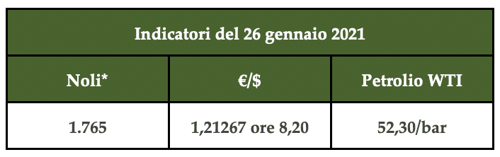 l’Indice dei noli B.D.Y. è leggermente sceso a 1.765 punti, il petrolio sfiora i 52,30 $/bar e l’indice di cambio €/$ segna 1,21267 ore 8,20