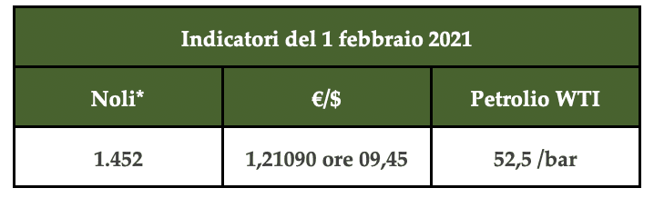 (*) Noli – L’indicatore dei “noli” è un indice dell’andamento dei costi del trasporto marittimo e dei noli delle principali categorie di navi dry bulk cargo, cioè quelle che trasportano rinfuse secche. Il BDI può anche costituire un indicatore del livello di domanda e offerta delle rinfuse secche.