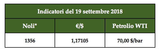 l’Indice dei noli è sceso sino a 1356 punti, il petrolio è fermo attorno a 70,00$/bar. e l’indice di cambio €/$ segna 1,17105