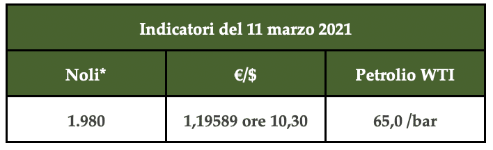 (*) Noli – L’indicatore dei “noli” è un indice dell’andamento dei costi del trasporto marittimo e dei noli delle principali categorie di navi dry bulk cargo, cioè quelle che trasportano rinfuse secche. Il BDI può anche costituire un indicatore del livello di domanda e offerta delle rinfuse secche.