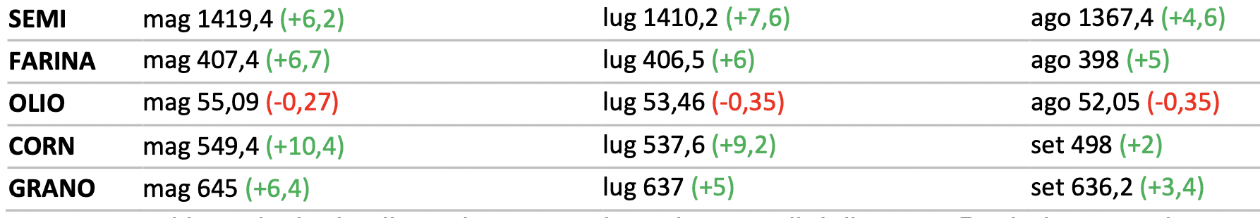 Mario Boggini – esperto di mercati cerealicoli nazionali e internazionali – (per contatti +39 338 6067872) – Valori indicativi senza impegno, soggetti a variazioni improvvise. Questa informativa non costituisce servizio di consulenza finanziaria ed espone soltanto indicazioni-informazioni per aiutare le scelte del lettore, pertanto qualsiasi conseguenza sull’operatività basata su queste informative ricadono sul lettore.