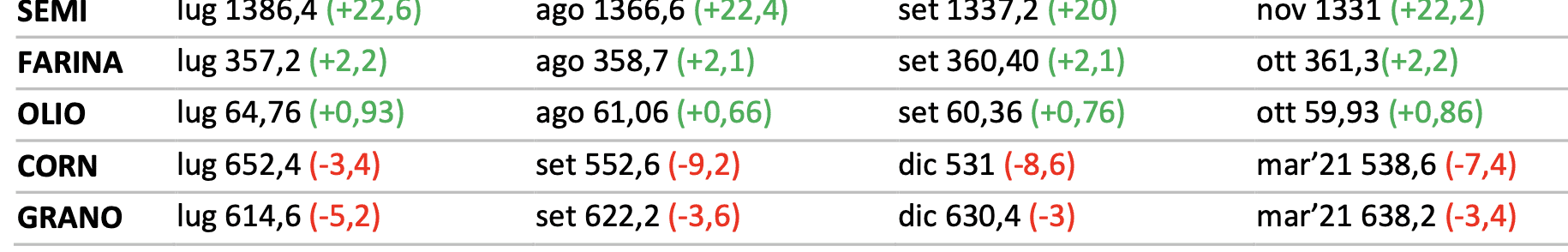 Impossibile ipotizzare indicazioni di prezzi per il futuro: la realtà è che se il tempo/meteo facesse giudizio avremmo questi alti e bassi sino a settembre ottobre cioè ai raccolti dell’emisfero Nord, se il meteo fosse avverso tale instabilità isterica con VALORI TROPPO ALTI potrebbe persistere sino a marzo 22 cioè ai raccolti del Sud America.