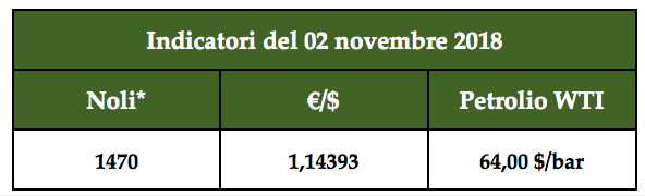 l’Indice dei noli è sceso sino a 1470 punti, il petrolio è sceso attorno a 64,00$/bar. e l’indice di cambio €/$ segna 1,14393