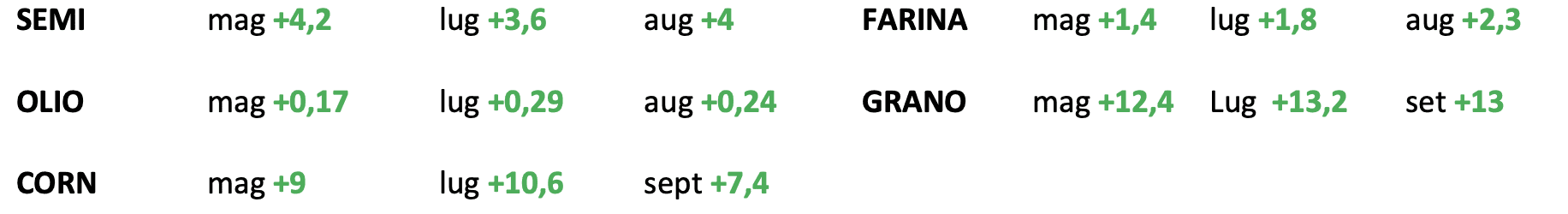 Mario Boggini – esperto di mercati cerealicoli nazionali e internazionali – (per contatti +39 338 6067872) – Valori indicativi senza impegno, soggetti a variazioni improvvise. Questa informativa non costituisce servizio di consulenza finanziaria ed espone soltanto indicazioni-informazioni per aiutare le scelte del lettore, pertanto qualsiasi conseguenza sull’operatività basata su queste informative ricadono sul lettore.