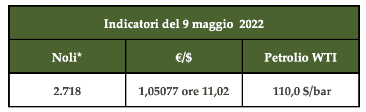 L’indice dei noli B.D.Y. è salito a 2.718 punti, il petrolio wti è salito a circa 110$ al barile, e il cambio gira a 1,05077 ore 11,02.