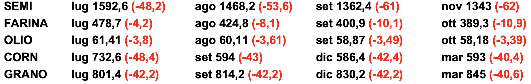 Mario Boggini – esperto di mercati cerealicoli nazionali e internazionali – (per contatti +39 338 6067872) – Valori indicativi senza impegno, soggetti a variazioni improvvise. Questa informativa non costituisce servizio di consulenza finanziaria ed espone soltanto indicazioni-informazioni per aiutare le scelte del lettore, pertanto qualsiasi conseguenza sull’operatività basata su queste informative ricadono sul lettore.