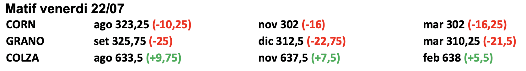 Cereali e dintorni. Il lungo cammino verso la normalizzazione (news del 25 luglio 22 per le notizie complete e in tempo reale tel. al Dr. Mario Boggini)