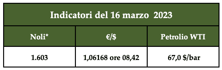 L’indice dei noli B.D.Y. è salito a 1.603 punti, il petrolio wti è sceso a circa 67 $ al barile, il cambio €/$ gira a 1,06168 ore 08,42