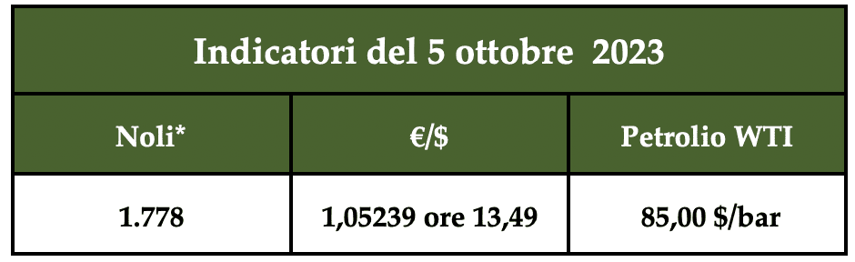 L’indice dei noli b.d.y. è salito a 1.778 punti, il petrolio wti è sceso a circa 85,00 $ al barile, il cambio €/$ gira a 1,05239 ore 13,49
