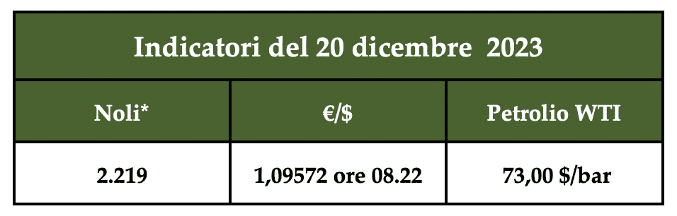 L’indice dei noli b.d.y. è sceso a 2.219 punti, il petrolio wti è salito a circa 73 $ al barile, il cambio €/$ gira a 1,09572 ore 08.22