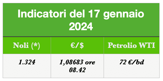 L’indice dei noli b.d.y. è inspiegabilmente in discesa a 1.324 punti, il petrolio wti è sceso a circa 72 $ al barile, il cambio €/$ gira a 1,08683 ore 08.42