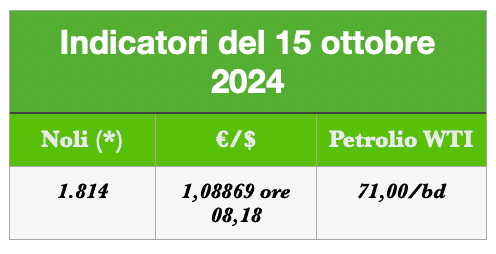 L’indice dei noli b.d.y. è salito a 1.814 punti, il petrolio wti è sceso a 71 $ al barile, il cambio €/$ gira a 1,08869 ore 08,18. IL DOLLARO SI STA RAFFORZANDO A CAUSA DELLE VARIE E MAGGIORI TENSIONI MONDIALI.
