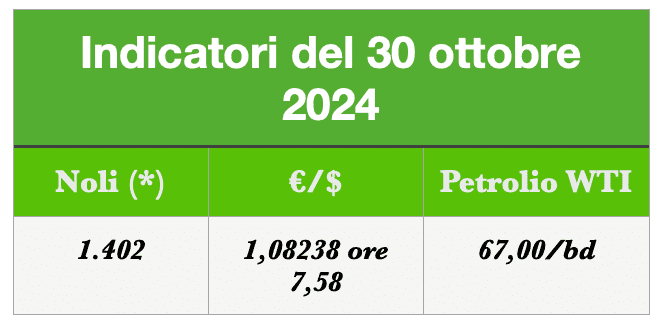 L’indice dei noli b.d.y. è stabile a 1.402 punti, il petrolio wti è sceso a 67 $ al barile, il cambio €/$ gira a 1,08238 ore 7,58