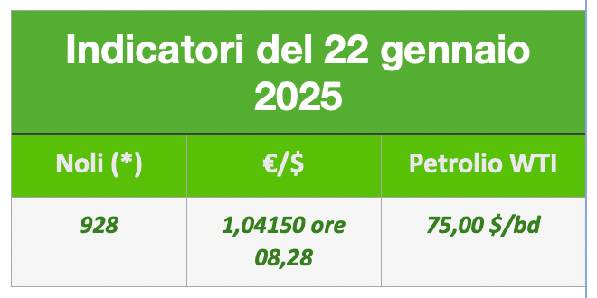 L’indice dei noli b.d.y. è sceso a 928 punti, il petrolio wti è salito a 75 $ al barile, il cambio €/$ gira a 1,04150 ore 08,28.