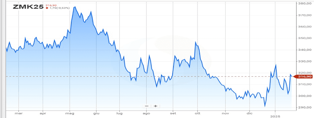 Mario Boggini – esperto di mercati cerealicoli nazionali e internazionali – (per contatti +39 338 6067872) – Valori indicativi senza impegno, soggetti a variazioni improvvise. Questa informativa non costituisce servizio di consulenza finanziaria ed espone soltanto indicazioni-informazioni per aiutare le scelte del lettore, pertanto qualsiasi conseguenza sull’operatività basata su queste informative ricadono sul lettore.