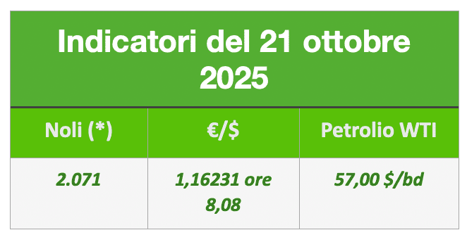 L’indice dei noli b.d.y. è salito a 2.071 punti, il petrolio wti è sceso a circa 57 al barile, il cambio €/$ gira a 1,16231 ore 8,08