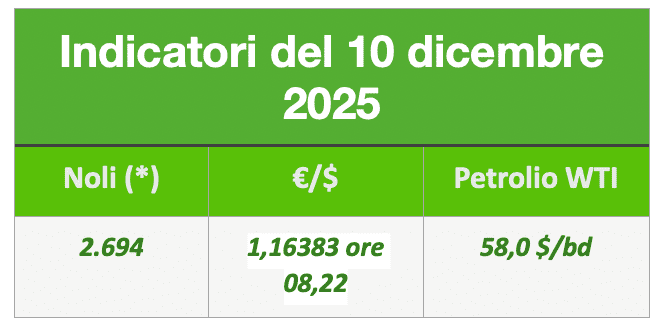 L’indice dei noli b.d.y. è salito a 2.694 punti, il petrolio wti è sceso a circa 58 al barile, il cambio €/$ gira a 1,16383 ore 08,22