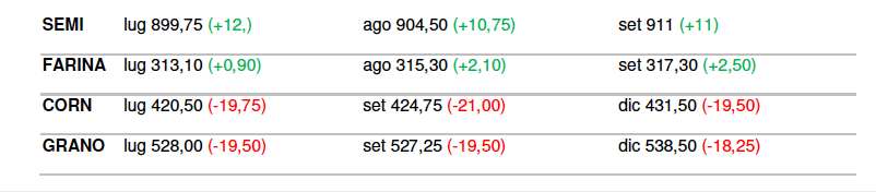 Mario Boggini – esperto di mercati cerealicoli nazionali e internazionali – (per contatti +39 338 6067872) – Valori indicativi senza impegno, soggetti a variazioni improvvise. Questa informativa non costituisce servizio di consulenza finanziaria ed espone soltanto indicazioni-informazioni per aiutare le scelte del lettore, pertanto qualsiasi conseguenza sull’operatività basata su queste informative ricadono sul lettore.