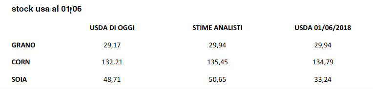 USDA, qualche sorpresa muove il mercato.(news del 29/6/2019)
