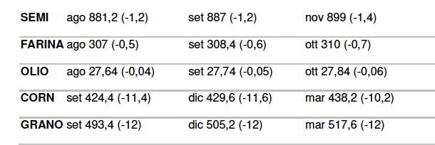 Mario Boggini – esperto di mercati cerealicoli nazionali e internazionali – (per contatti +39 338 6067872) – Valori indicativi senza impegno, soggetti a variazioni improvvise. Questa informativa non costituisce servizio di consulenza finanziaria ed espone soltanto indicazioni-informazioni per aiutare le scelte del lettore, pertanto qualsiasi conseguenza sull’operatività basata su queste informative ricadono sul lettore.