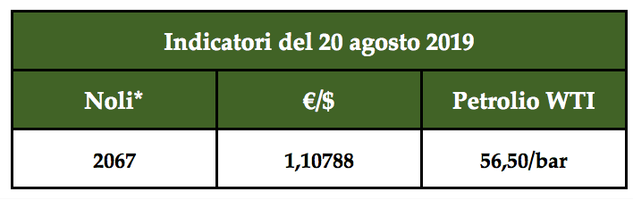 (*) Noli – L’indicatore dei “noli” è un indice dell’andamento dei costi del trasporto marittimo e dei noli delle principali categorie di navi dry bulk cargo, cioè quelle che trasportano rinfuse secche. Il BDI può anche costituire un indicatore del livello di domanda e offerta delle rinfuse secche.