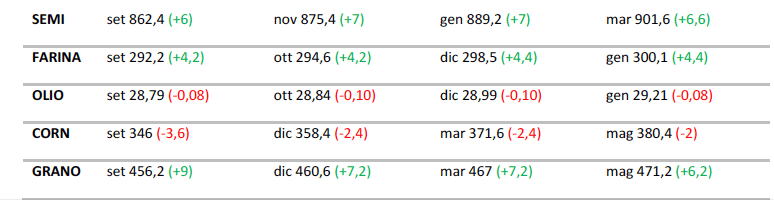 Mario Boggini – esperto di mercati cerealicoli nazionali e internazionali – (per contatti +39 338 6067872) – Valori indicativi senza impegno, soggetti a variazioni improvvise. Questa informativa non costituisce servizio di consulenza finanziaria ed espone soltanto indicazioni-informazioni per aiutare le scelte del lettore, pertanto qualsiasi conseguenza sull’operatività basata su queste informative ricadono sul lettore.