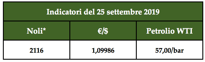 l’Indice dei noli è sceso a 2116 punti, il petrolio è a quota 57,00$ e l’indice di cambio €/$ segna 1,09986 (Hr. 15,30).