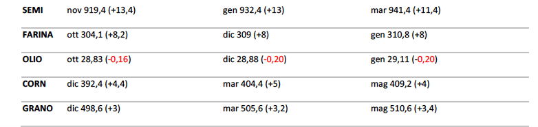 Mario Boggini – esperto di mercati cerealicoli nazionali e internazionali – (per contatti +39 338 6067872) – Valori indicativi senza impegno, soggetti a variazioni improvvise. Questa informativa non costituisce servizio di consulenza finanziaria ed espone soltanto indicazioni-informazioni per aiutare le scelte del lettore, pertanto qualsiasi conseguenza sull’operatività basata su queste informative ricadono sul lettore.