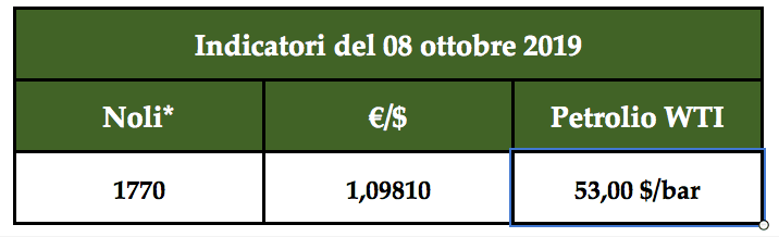 l’Indice dei noli è sceso a 1770 punti, il petrolio è a quota 53,00$ e l’indice di cambio €/$ segna 1,09810 (Hr. 8,30).