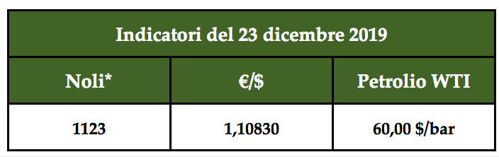 (*) Noli – L’indicatore dei “noli” è un indice dell’andamento dei costi del trasporto marittimo e dei noli delle principali categorie di navi dry bulk cargo, cioè quelle che trasportano rinfuse secche. Il BDI può anche costituire un indicatore del livello di domanda e offerta delle rinfuse secche.