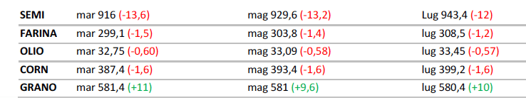 Mario Boggini – esperto di mercati cerealicoli nazionali e internazionali – (per contatti +39 338 6067872) – Valori indicativi senza impegno, soggetti a variazioni improvvise. Questa informativa non costituisce servizio di consulenza finanziaria ed espone soltanto indicazioni-informazioni per aiutare le scelte del lettore, pertanto qualsiasi conseguenza sull’operatività basata su queste informative ricadono sul lettore.